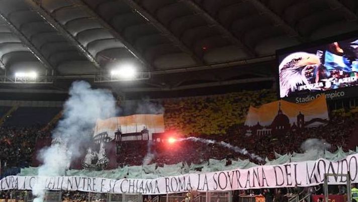 “Una lupa i gemelli nutre e si chiama Roma la sovrana del mondo”. La coreografia da brividi della Sud – FOTO