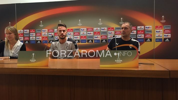 STADIO OLIMPICO, dal nostro inviato - Alla vigilia del match di Europa League tra Roma e Viktoria Plzen, il tecnico dei cechi Roman Pivarnik e il calciatore Jakub Hromada sono intervenuti in conferenza stampa per rispondere alle domande dei cronisti.