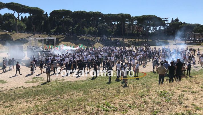 Lanci di bottiglie e sassi contro i giornalisti e cariche anche contro la polizia. Violenze e scontri a pochi minuti dall'inizio della manifestazione a Circo Massimo al sit-in indetto da Forza Nuova e dal gruppo "I ragazzi d'Italia" lanciato sulla pagina Facebook "Dalle curve alle piazze". Tutta la zona è blindata dalle forze dell'ordine. Molti manifestanti indossano la maglietta bianca, altri mascherine scure e cappucci. In piazza anche il leader di Forza Nuova Roberto Fiore. Il cuore di Roma è blindato da un folto schieramento di forze dell'ordine, situazione estremamente tesa con gli esponenti della destra più estrema e xenofoba. L'adunata nazionale era stata convocata tramite i social dai "Ragazzi d'Italia", un movimento neofascista con base a Brescia (la curva cittadina ha preso le distanze dall'iniziativa).