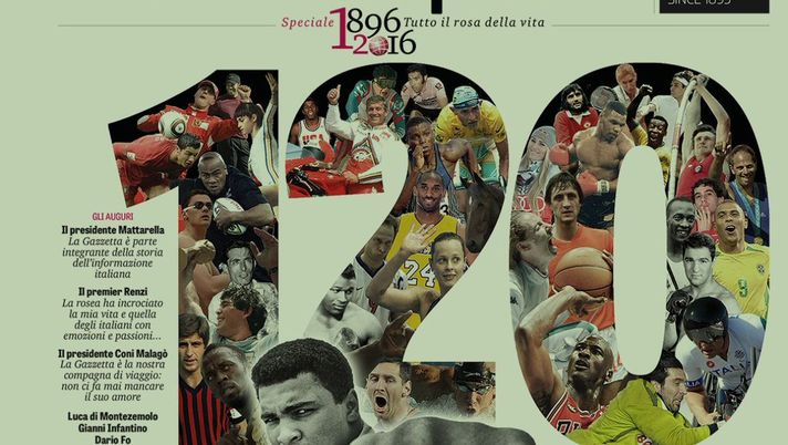 In occasione del suo compleanno, La Gazzetta dello Sport è oggi in edicola con uno straordinario numero da collezione: questa notte il quotidiano è stato stampata nello stesso colore verde della sua prima edizione e verrà distribuito in un milione di copie, con quattro pagine della copia del primo numero del 3 aprile 1896 in omaggio e un inserto con le più celebri prime pagine pubblicate in 120 anni di sport italiano e mondiale. Per l'occasione, anche la home page di gazzetta.it sarà di colore verde. Tanti auguri Gazzetta!
