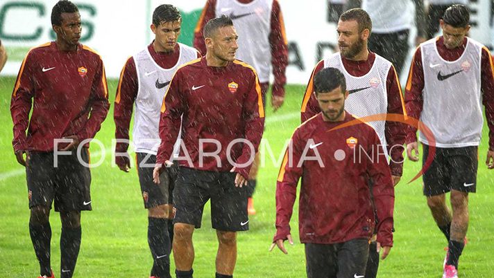 17.23 - Assenti Benatia, De Rossi (problema alla caviglia accusato questa mattina), Strootman (recupero dall'infortunio al ginocchio in Napoli-Roma dello scorso campionato), Balzaretti (recupero dall'infortunio e in seguito operato per pubalgia), Castan (problema al ginocchio accusato in Usa contro l'Inter), Florenzi e Cole.