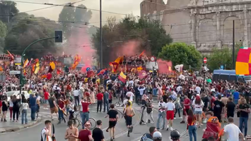 —La squadra è rientrata nella capitale la notte stessa della conquista della coppa. Il giorno successivo, la società – ricevuta l’autorizzazione necessaria – ha voluto festeggiare il successo, con i propri tifosi organizzando una vera e propria sfilata per le vie di Roma. Calciatori e allenatore hanno attraversato le strade attorno a Caracalla e al Circo Massimo, a bordo di due pullman (uno per la squadra e un altro per i dirigenti su cui erano presenti anche Dan e Ryan Friedkin), un percorso durante il quale decine di migliaia di tifosi hanno accompagnato il mezzo che più volte si è bloccato proprio per la folla presente sulle strade. La partenza fissata alle terme di Caracalla prevedeva un giro che però ha dovuto subire delle variazioni. Forse la società non si aspettava l’afflusso di tifosi che invece c’è stato, tanto che la squadra è stata letteralmente bloccata già all’altezza della Cristoforo Colombo, mentre tentava di raggiungere il punto di partenza della sfilata. Fatto sta che il giro è durato tantissimo e il pullman non è riuscito neanche a completare l’itinerario che era stato fissato. Inizialmente, infatti, la sfilata si sarebbe dovuta chiudere al Circo Massimo, ma gli organizzatori hanno dovuto rivedere il percorso, proprio per il numero di tifosi che hanno invaso le strade della capitale, accompagnando la squadra con canzoni, striscioni e fumogeni e che hanno impedito, in parte, che i mezzi effettuassero il giro completo che inizialmente era stato stabilito. I giocatori erano in delirio, con Zaniolo in testa a guidare i cori e Mourinho che festeggiava e si prendeva i complimenti e l’amore della gente che era davvero alle stelle. La festa è durata più del previsto, vista la gente che era accorsa, ed è terminata al Colosseo.