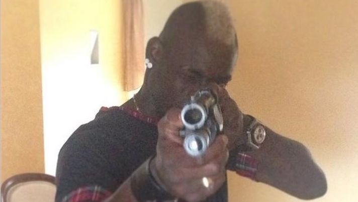 Il centravanti di Scarsa Italia ha postato una foto sul web che lo ritrae mentre punta un fucile nell’occhio del malcapitato lettore, dedicando il proiettile immaginario «a tutti i miei odiatori».