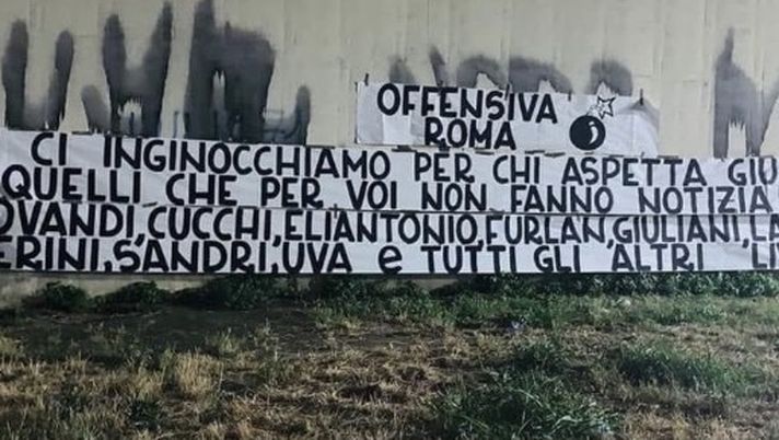 "Offensiva Roma" ha firmato uno striscione: "Ci inginocchiamo per chi aspetta giustizia, quelli che per voi non fanno notizia"
