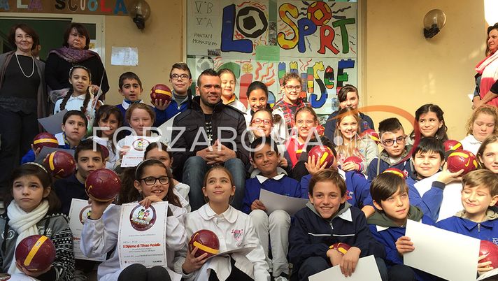 Tanto affetto da parte dei bambini delle scuole elementari per il brasiliano che spera di tornare in campo per le ultime partite di campionato