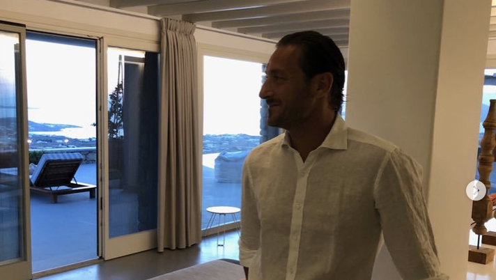 Lo storico capitano della Roma sta trascorrendo il fine settimana a Mykonos con la moglie Ilary e alcuni parenti e amici