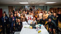 La Roma fa festa alla “BayArena”: tripudio negli spogliatoi e dedica speciale