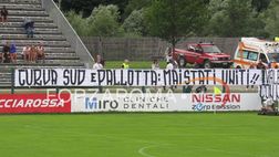 Pinzolo, striscione dei tifosi in tribuna: “Curva Sud e Pallotta: mai stati uniti!”
