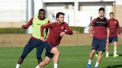 Trigoria, lavoro sul possesso palla e partita a campo ridotto. Individuale per De...