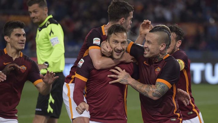 L'emozione infinita di una notte unica. Da Roma. Proprio quando tutto sembra perduto, spunta dal cilindro lui, l'uomo che da oltre vent'anni tiene per mano la sua amata, tirandola fuori dai pasticci. Come a Bergamo, Spalletti si affida al suo vecchio fuoriclasse per riemergere dalle ceneri. E l'esperto campione non tradisce nemmeno stavolta: doppietta in tre minuti. Da 1-2 a 3-2. I giallorossi tornano a vincere in rimonta dopo quasi un anno: l'ultima volta il 17 maggio 2015, all'Olimpico contro l'Udinese. Da 0-1 al 2-1 finale grazie ai guizzi di Nainggolan e Torosidis.